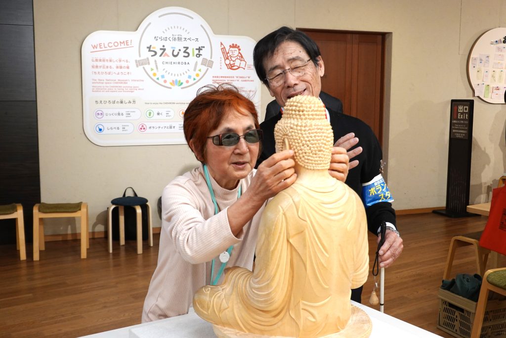 奈良博所蔵の国宝 薬師如来坐像の模像(材質や造り方まで忠実に再現する方法で製作した複製品)を実際に触ることで、