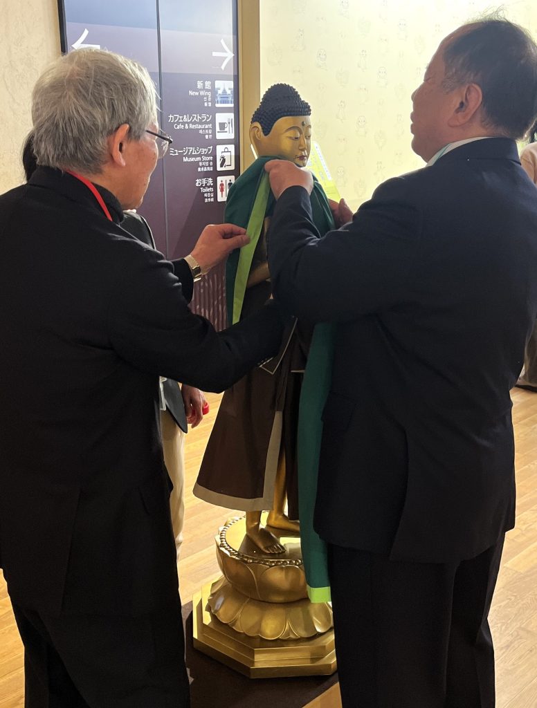 裸の仏像のレプリカに服を着せるワークショップです。
